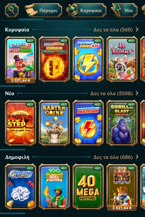 Κουλοχέρηδες, Ζωντανό Καζίνο, Παιχνίδια Τραπεζιού, Jackpots, Instant Win |