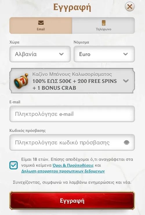 100% έως 500€ + 200 Δωρεάν Περιστροφές + 1 Bonus Crab |